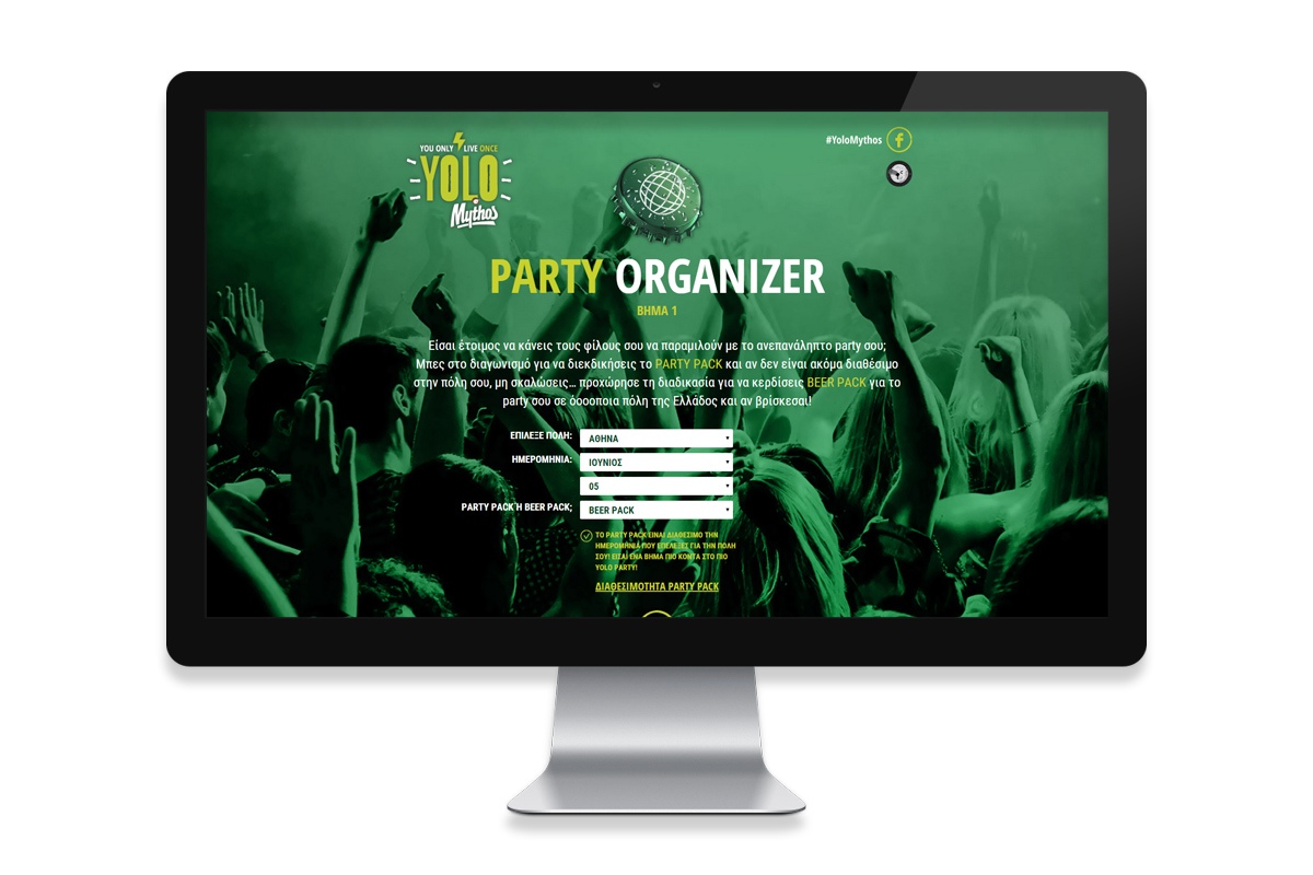 Using Yolo, (abbreviation for "You only live once"), a common phrase among youngsters, Mythos beer invites its friends to throw parties in several cities all over Greece and offers party packs and beer packs through competition. At the same time, Mythos offers discounts at restaurants, bars and activities through an online platform.